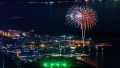 港内から打ち上げられる花火が海面に映り込み、幻想的な雰囲気を演出します。
