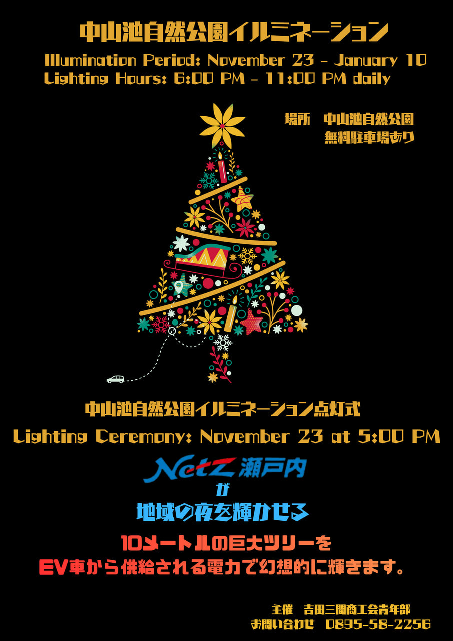 点灯には EV 車から供給された電力を使うという取り組みがあり、環境にも配慮したサステナブルな演出が魅力です。