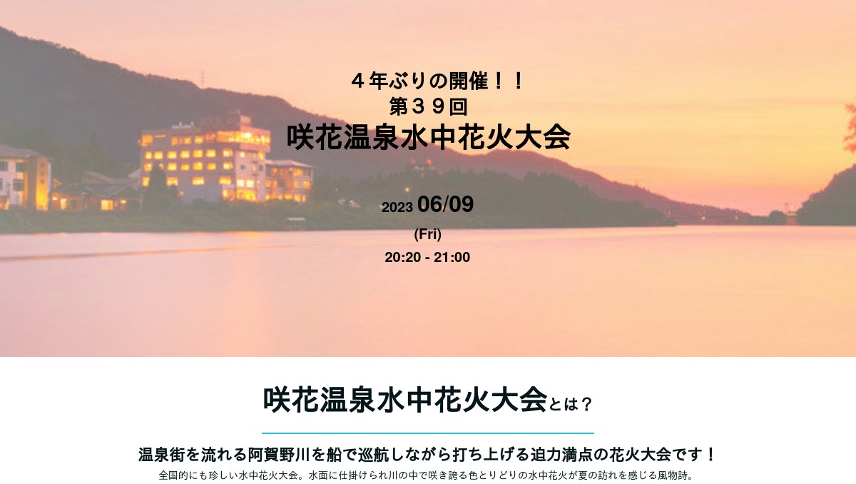 - 【6/13金】咲花温泉水中花火大会(五泉市)