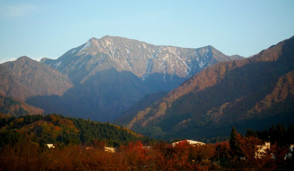 越後三山と紅葉のパノラマ