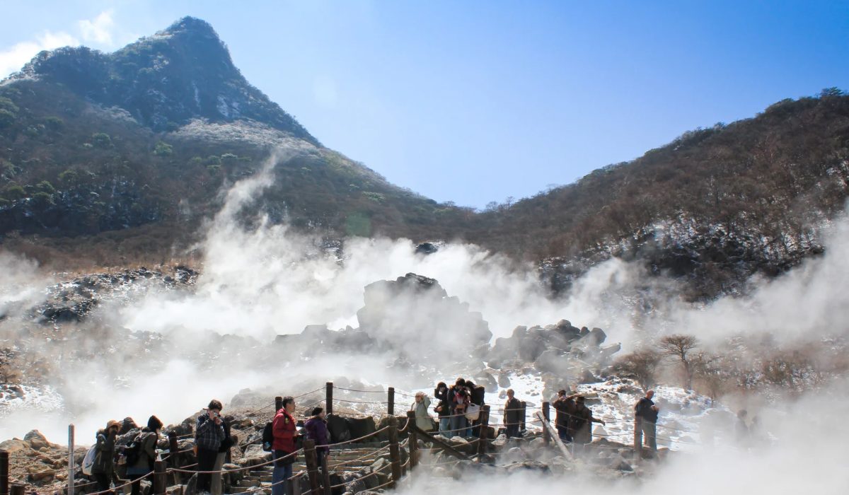 大涌谷(おおわくだに)は、約3000年前の箱根火山の噴火によってできた火山性の谷間で、現在でも火山活動が続いており、噴煙が立ち上る荒々しい景観が楽しめる場所です。特にその硫黄のにおいと、モクモクと上がる蒸気が独特の雰囲気を醸し出し、まさに地球の息吹を感じられるスポットとして人気です。