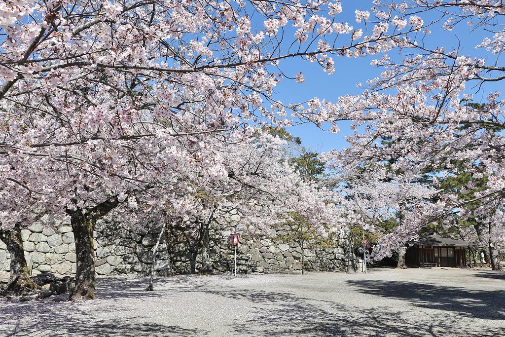 約800本の桜が城跡公園に咲き、白い天守とピンクの花が織りなす景色は写真映え抜群。デートの記念撮影にも最適です。