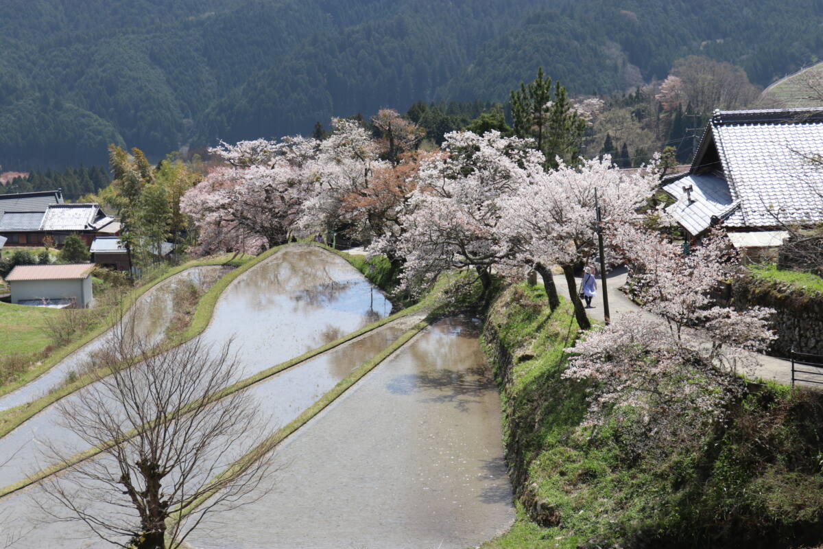 古い集落や田園の景色と一緒に咲く桜は、とてもフォトジェニック。ふたりでゆっくりと歩けば、日常を忘れた癒しの時間に。
