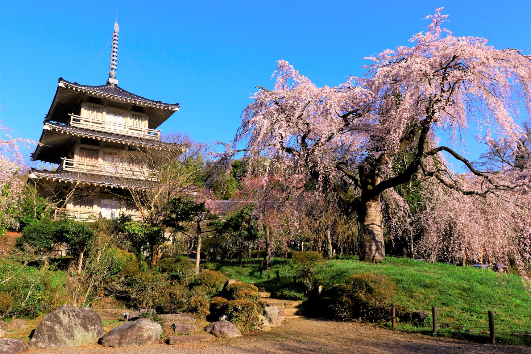 江戸時代に建立された浄専寺の厳かな空間に咲く桜は、ただの花見ではなく“心に残る春の風景”を演出。三重塔や本堂を背景に写真撮影するのにもぴったりです。