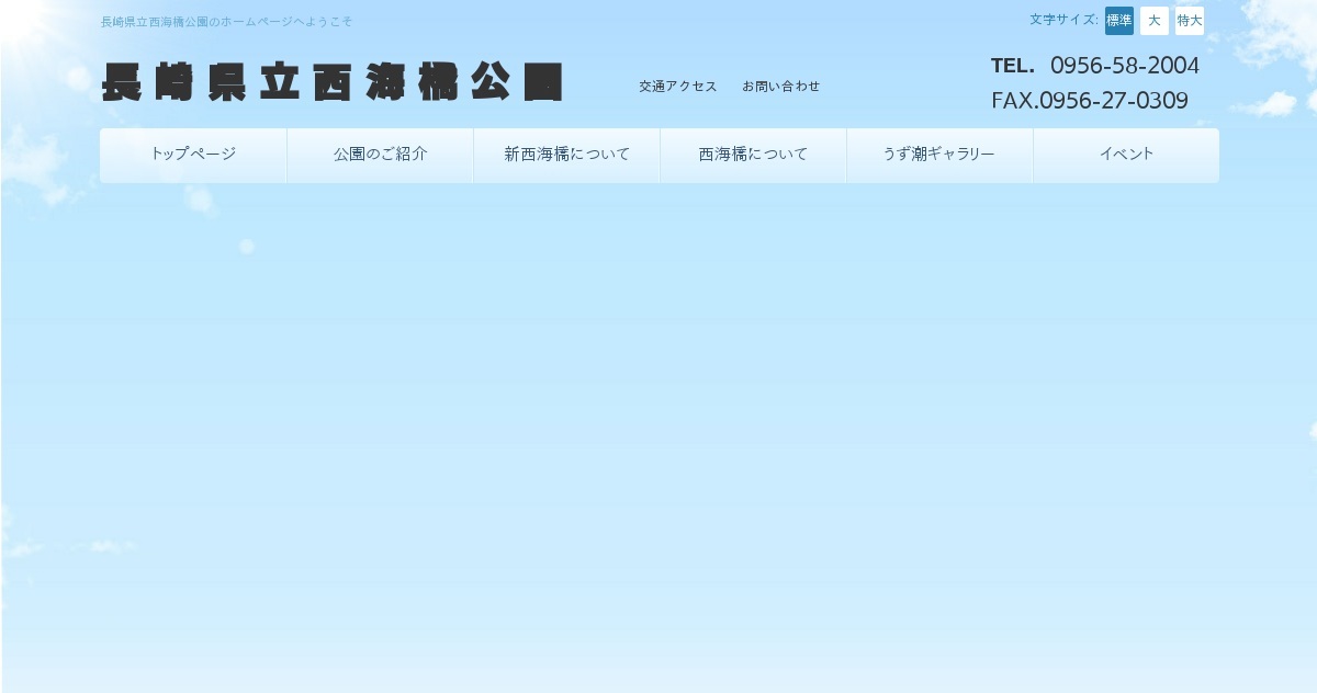 - 公共交通:JR佐世保駅またはハウステンボス駅から西肥バスで約45〜50分、「西海橋西口」または「西海橋東口」下車すぐ。
