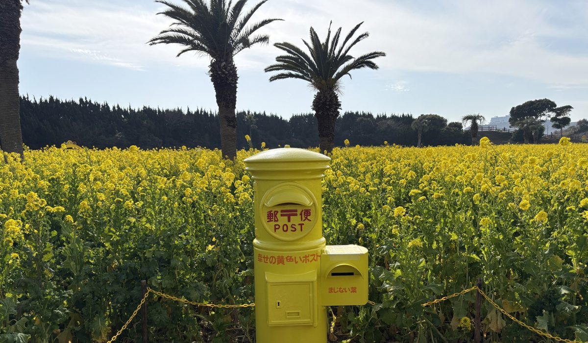 菜の花と海を背景にSNS映えする写真を撮るのに最適。