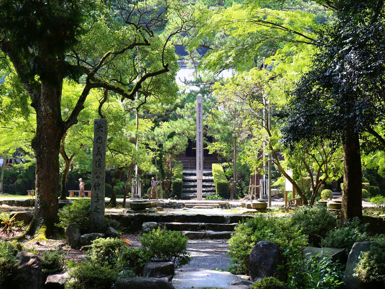 本堂へ続く参道にはモミジが並び、紅葉が見頃を迎えると美しいトンネルとなります。歩くたびに足元に舞う落ち葉が、秋の風情を感じさせてくれます。